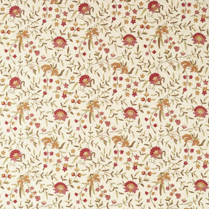 Trails of gently curving stems and unfurling blooms make up Habington. Named after the family who once lived at Brockhampton Estate, this Jacobean floral design was inspired by the crewel work displayed within the manor. Stitched with a fine trellis grid, its delicate mélangé embroidery lends the stitching a subtle tonal movement.