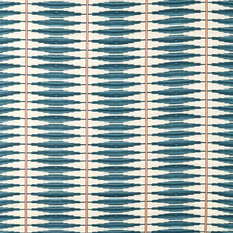 Cintilla is a mesmerising printed and embroidered stripe. This simple ikat is punctuated with an embroidered stitch stripe for texture and effect. Available in four colourways.
