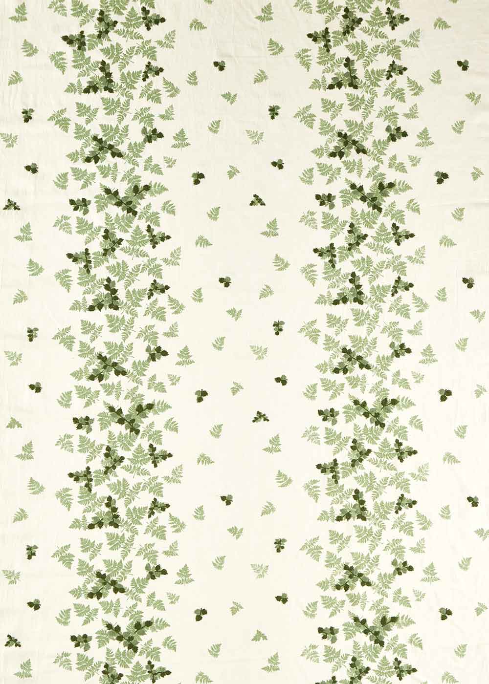 Combining a block print mark and embroidery, this design is inspired by the ferns that flourish all over the grounds. Alice`s Fern has been brought to life as an interior fabric, reinterpreted into a beautiful ombre stripe.
